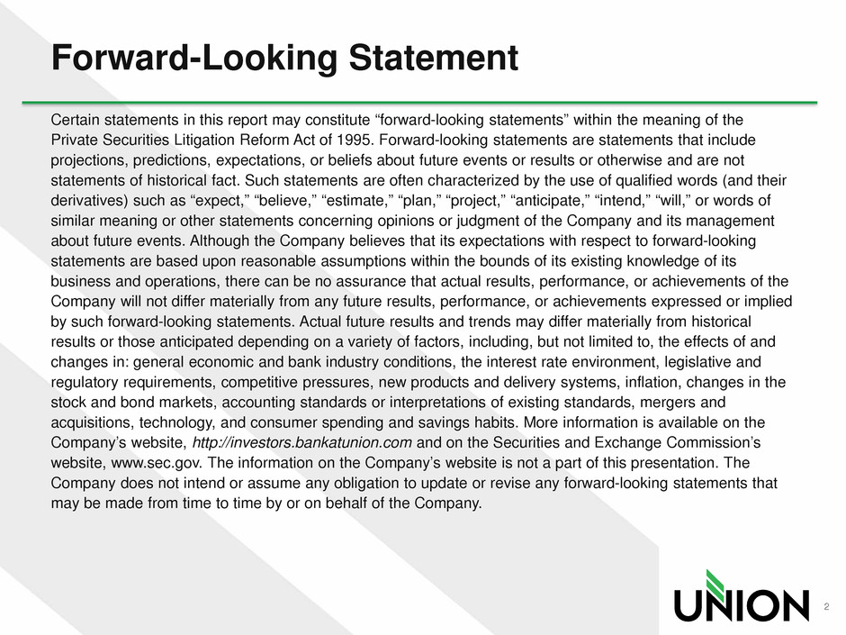 Company’s website, http://investors.bankatunion.com and on the Securities and Exchange Commission’s