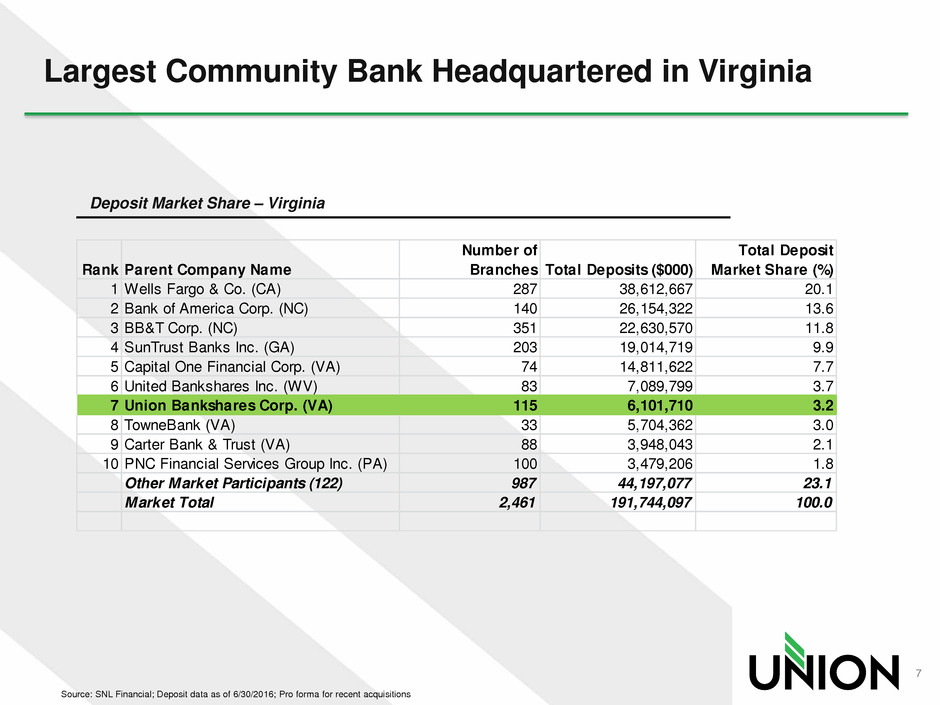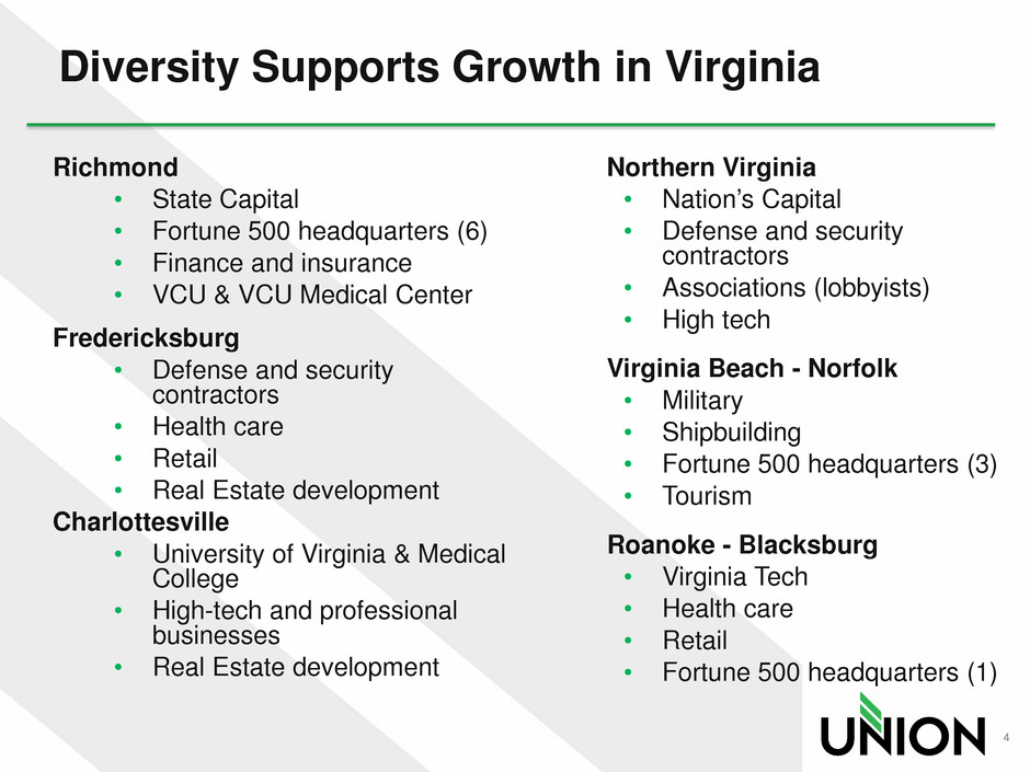 Union is the only Virginia-based bank with a statewide