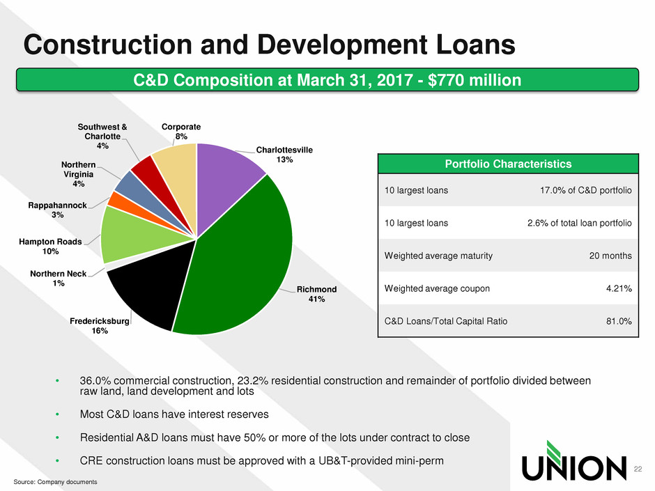 10 largest loans 17.0% of C&D portfolio