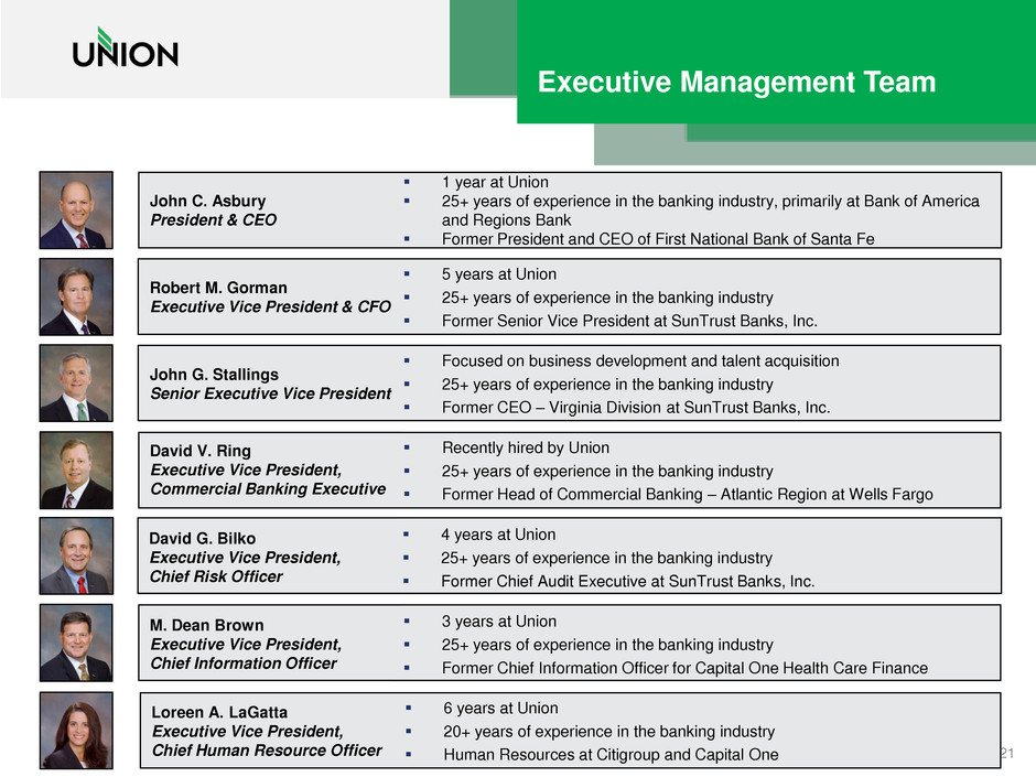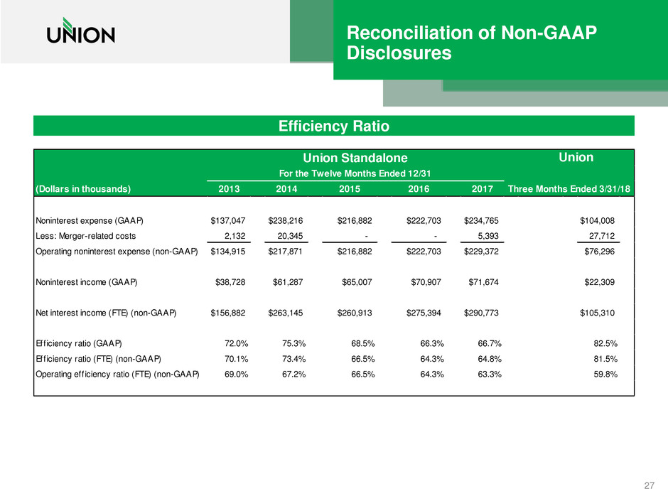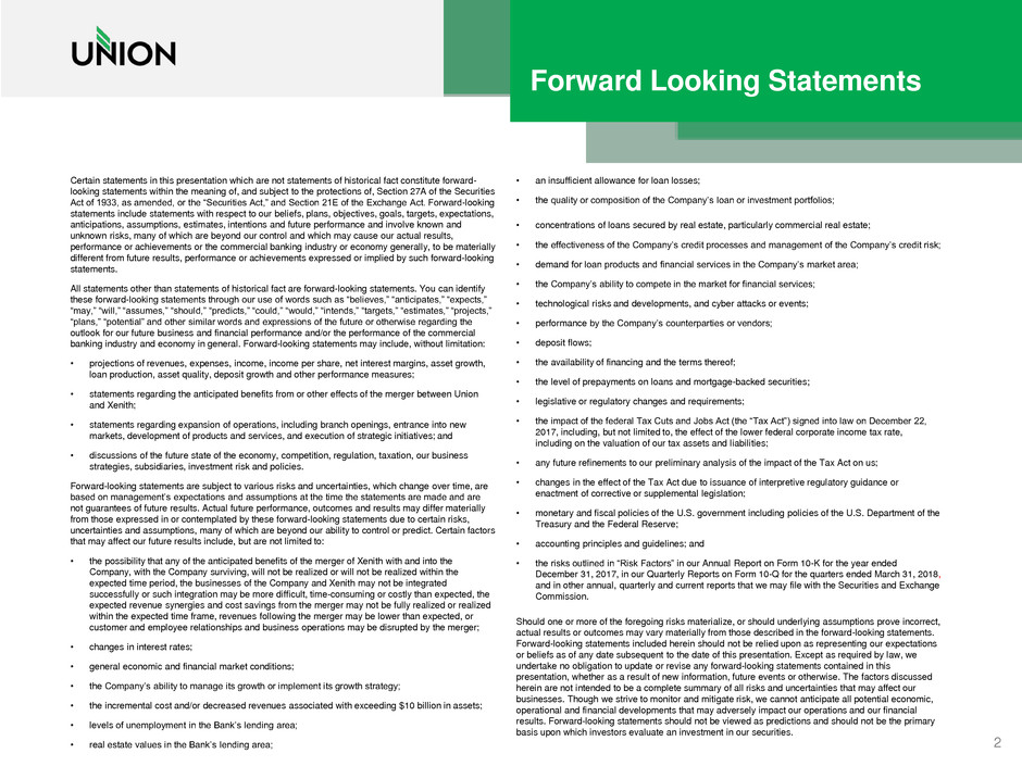 • statements regarding the anticipated benefits from or other effects of the merger between Union