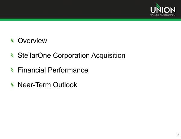 Overview StellarOne Corporation Acquisition Financial Performance Near - Term Outlook 2