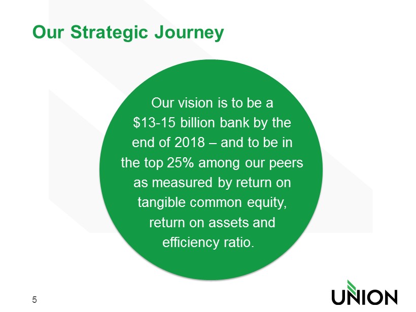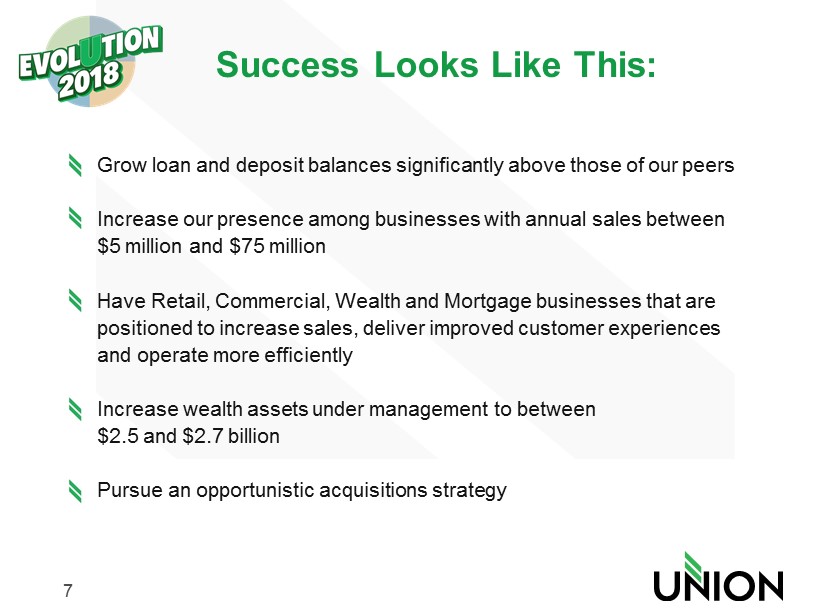 5 Our vision is to be a $13 - 15 billion bank by the end of 2018 – and to be in the top 25% among our peers as measured by return on tangible common equity, return on assets and efficiency ratio. Our Strategic Journey