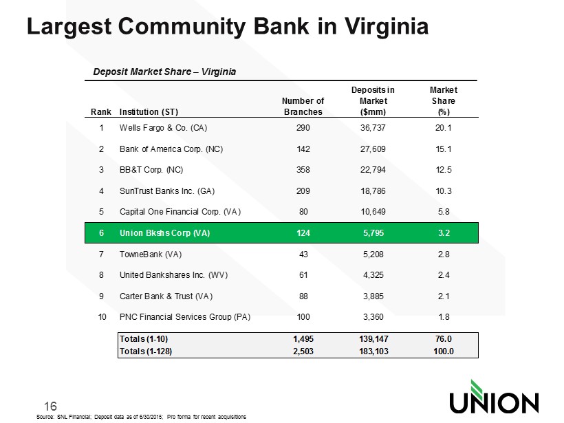 17 Rappahannock Rappahannock Rappahannock Rappahannock Rappahannock Rappahannock Rappahannock Rappahannock Rappahannock Rockbridge Rockbridge Rockbridge Rockbridge Rockbridge Rockbridge Rockbridge Rockbridge Rockbridge Nelson Nelson Nelson Nelson Nelson Nelson Nelson Nelson Nelson Accomack Accomack Accomack Accomack Accomack Accomack Accomack Accomack Accomack Albemarle Albemarle Albemarle Albemarle Albemarle Albemarle Albemarle Albemarle Albemarle Amelia Amelia Amelia Amelia Amelia Amelia Amelia Amelia Amelia Appomattox Appomattox Appomattox Appomattox Appomattox Appomattox Appomattox Appomattox Appomattox Arlington Arlington Arlington Arlington Arlington Arlington Arlington Arlington Arlington Augusta Augusta Augusta Augusta Augusta Augusta Augusta Augusta Augusta Bath Bath Bath Bath Bath Bath Bath Bath Bath Bedford Bedford Bedford Bedford Bedford Bedford Bedford Bedford Bedford Bland Bland Bland Bland Bland Bland Bland Bland Bland Botetourt Botetourt Botetourt Botetourt Botetourt Botetourt Botetourt Botetourt Botetourt Brunswick Brunswick Brunswick Brunswick Brunswick Brunswick Brunswick Brunswick Brunswick Buchanan Buchanan Buchanan Buchanan Buchanan Buchanan Buchanan Buchanan Buchanan Caroline Caroline Caroline Caroline Caroline Caroline Caroline Caroline Caroline Carroll Carroll Carroll Carroll Carroll Carroll Carroll Carroll Carroll Charles City Charles City Charles City Charles City Charles City Charles City Charles City Charles City Charles City Charlotte Charlotte Charlotte Charlotte Charlotte Charlotte Charlotte Charlotte Charlotte Clarke Clarke Clarke Clarke Clarke Clarke Clarke Clarke Clarke Craig Craig Craig Craig Craig Craig Craig Craig Craig Culpeper Culpeper Culpeper Culpeper Culpeper Culpeper Culpeper Culpeper Culpeper Cumberland Cumberland Cumberland Cumberland Cumberland Cumberland Cumberland Cumberland Cumberland Dickenson Dickenson Dickenson Dickenson Dickenson Dickenson Dickenson Dickenson Dickenson Dinwiddie Dinwiddie Dinwiddie Dinwiddie Dinwiddie Dinwiddie Dinwiddie Dinwiddie Dinwiddie Essex Essex Essex Essex Essex Essex Essex Essex Essex Floyd Floyd Floyd Floyd Floyd Floyd Floyd Floyd Floyd Fluvanna Fluvanna Fluvanna Fluvanna Fluvanna Fluvanna Fluvanna Fluvanna Fluvanna Franklin Franklin Franklin Franklin Franklin Franklin Franklin Franklin Franklin Giles Giles Giles Giles Giles Giles Giles Giles Giles Grayson Grayson Grayson Grayson Grayson Grayson Grayson Grayson Grayson Greene Greene Greene Greene Greene Greene Greene Greene Greene Halifax Halifax Halifax Halifax Halifax Halifax Halifax Halifax Halifax Hanover Hanover Hanover Hanover Hanover Hanover Hanover Hanover Hanover Henrico Henrico Henrico Henrico Henrico Henrico Henrico Henrico Henrico Henry Henry Henry Henry Henry Henry Henry Henry Henry Highland Highland Highland Highland Highland Highland Highland Highland Highland Isle of Wight Isle of Wight Isle of Wight Isle of Wight Isle of Wight Isle of Wight Isle of Wight Isle of Wight Isle of Wight King George King George King George King George King George King George King George King George King George Lancaster Lancaster Lancaster Lancaster Lancaster Lancaster Lancaster Lancaster Lancaster Lee Lee Lee Lee Lee Lee Lee Lee Lee Mathews Mathews Mathews Mathews Mathews Mathews Mathews Mathews Mathews Montgomery Montgomery Montgomery Montgomery Montgomery Montgomery Montgomery Montgomery Montgomery Orange Orange Orange Orange Orange Orange Orange Orange Orange Patrick Patrick Patrick Patrick Patrick Patrick Patrick Patrick Patrick Pittsylvania Pittsylvania Pittsylvania Pittsylvania Pittsylvania Pittsylvania Pittsylvania Pittsylvania Pittsylvania Rockingham Rockingham Rockingham Rockingham Rockingham Rockingham Rockingham Rockingham Rockingham Russell Russell Russell Russell Russell Russell Russell Russell Russell Scott Scott Scott Scott Scott Scott Scott Scott Scott Shenandoah Shenandoah Shenandoah Shenandoah Shenandoah Shenandoah Shenandoah Shenandoah Shenandoah Smyth Smyth Smyth Smyth Smyth Smyth Smyth Smyth Smyth Southampton Southampton Southampton Southampton Southampton Southampton Southampton Southampton Southampton Stafford Stafford Stafford Stafford Stafford Stafford Stafford Stafford Stafford Surry Surry Surry Surry Surry Surry Surry Surry Surry Sussex Sussex Sussex Sussex Sussex Sussex Sussex Sussex Sussex Tazewell Tazewell Tazewell Tazewell Tazewell Tazewell Tazewell Tazewell Tazewell Wise Wise Wise Wise Wise Wise Wise Wise Wise Wythe Wythe Wythe Wythe Wythe Wythe Wythe Wythe Wythe York York York York York York York York York Bristol City Bristol City Bristol City Bristol City Bristol City Bristol City Bristol City Bristol City Bristol City Chesapeake City Chesapeake City Chesapeake City Chesapeake City Chesapeake City Chesapeake City Chesapeake City Chesapeake City Chesapeake City Clifton Forge City Clifton Forge City Clifton Forge City Clifton Forge City Clifton Forge City Clifton Forge City Clifton Forge City Clifton Forge City Clifton Forge City Hampton City Hampton City Hampton City Hampton City Hampton City Hampton City Hampton City Hampton City Hampton City MSA Market Share Rank Company Deposits Total Market Deposits Market Share Roanoke Deposits: $351 mm Market Tot.: $7.3 bn Mkt. Share: 4.8% Rank: #6 Branches: 8 Staunton / Harrisonburg Rank: #2 Deposits: $496 mm Market Tot.: $3.6 bn Mkt. Share: 13.9% Branches: 13 Blacksburg Rank: #1 Deposits: $690 mm Market Tot.: $2.9 bn Mkt. Share: 23.5% Branches: 9 Charlottesville Rank: #4 Deposits: $411 mm Market Tot.: $4.3 bn Mkt. Share: 9.6% Branches: 8 Richmond Rank: #5 Deposits: $1.7 bn Market Tot.: $35.9 bn Mkt. Share: 4.8% Branches: 40 Culpeper Rank: #1 Deposits: $432 mm Market Tot.: $1.3 bn Mkt. Share: 34.4% Branches: 8 Fredericksburg Rank: #1 Deposits: $845mm Market Tot.: $3.8 bn Mkt. Share: 22.1% Branches: 14 Statewide Rank: #6 Deposits: $5.8bn Market Tot.: $183bn Mkt. Share: 3.2% Branches: 124 Strong Presence Across All Major Markets Northern Neck Rank: #1 Deposits: $310mm Market Tot.: $1.5 bn Mk