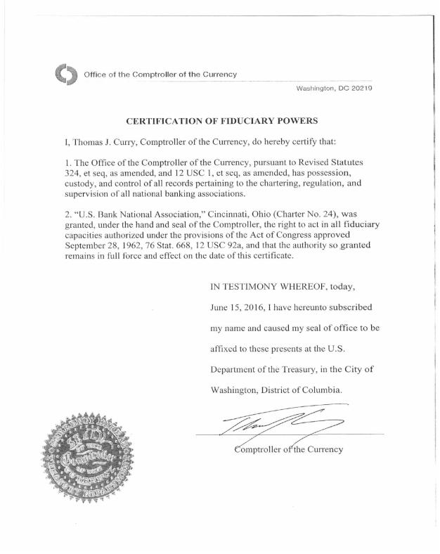 In accordance with Section 321(b) of the Trust Indenture Act of 1939, the undersigned, U.S. BANK NATIONAL ASSOCIATION hereby consents that reports of examination of the undersigned by Federal, State, Territorial or District authorities may be furnished by such authorities to the Securities and Exchange Commission upon its request therefor.