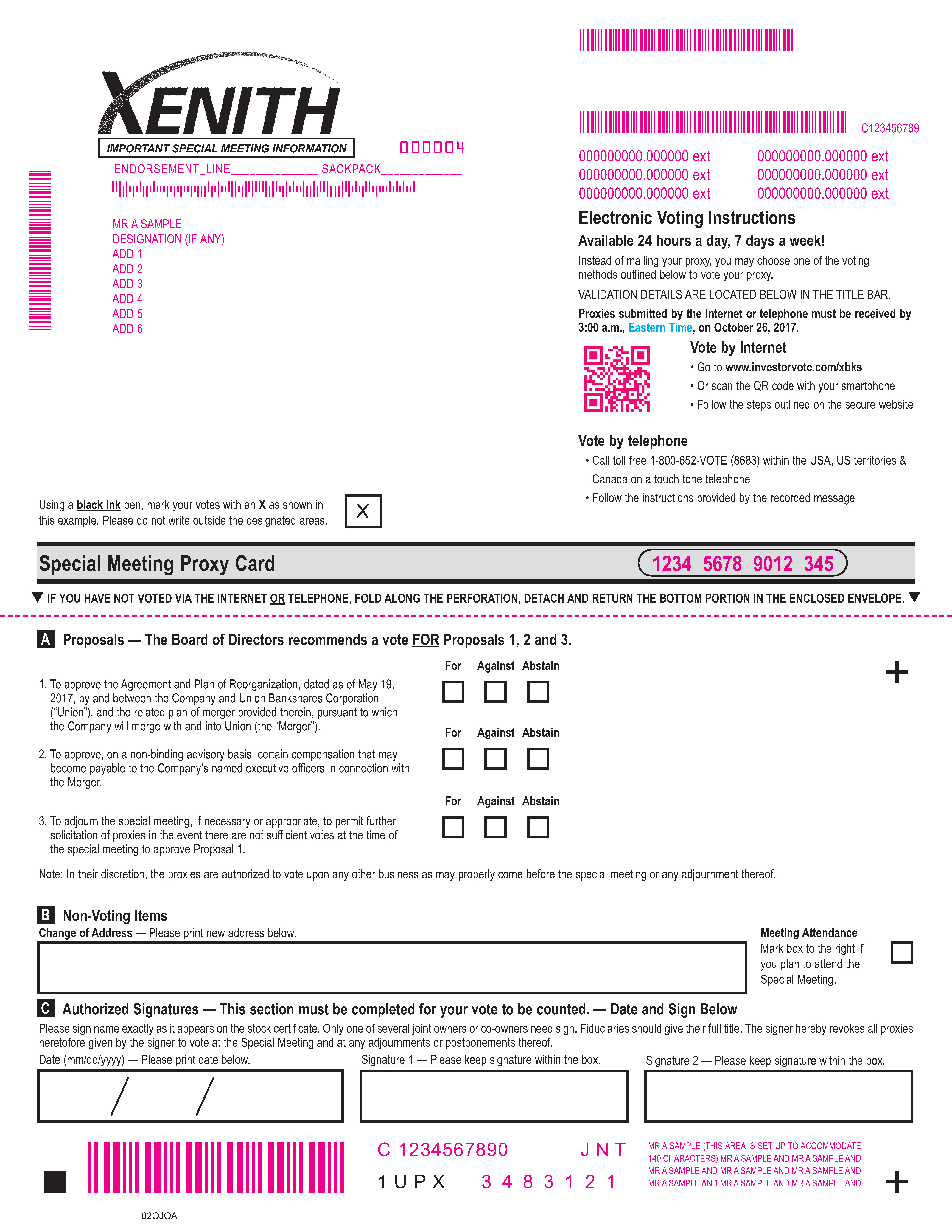 Using a black ink pen, mark your votes with an X as shown in this example. Please do not write outside the designated areas. X 02OJOA 1 U P X + Special Meeting Proxy Card . C Authorized Signatures — This section must be completed for your vote to be counted. — Date and Sign Below Please sign name exactly as it appears on the stock certificate. Only one of several joint owners or co-owners need sign. Fiduciaries should give their full title. The signer hereby revokes all proxies heretofore given by the signer to vote at the Special Meeting and at any adjournments or postponements thereof. Date (mm/dd/yyyy) — Please print date below. Signature 1 — Please keep signature within the box. Signature 2 — Please keep signature within the box. + B Non-Voting Items A Proposals — The Board of Directors recommends a vote FOR Proposals 1, 2 and 3. Meeting Attendance Mark box to the right if you plan to attend the Special Meeting. Change of Address — Please print new address below. IMPORTANT SPECIAL MEETING INFORMATION For Against Abstain 1. To approve the Agreement and Plan of Reorganization, dated as of May 19, 2017, by and between the Company and Union Bankshares Corporation (“Union”), and the related plan of merger provided therein, pursuant to which the Company will merge with and into Union (the “Merger”). 2. To approve, on a non-binding advisory basis, certain compensation that may become payable to the Company’s named executive officers in connection with the Merger. 3. To adjourn the special meeting, if necessary or appropriate, to permit further solicitation of proxies in the event there are not sufficient votes at the time of the special meeting to approve Proposal 1. For Against Abstain For Against Abstain Note: In their discretion, the proxies are authorized to vote upon any other business as may properly come before the special meeting or any adjournment thereof. MMMMMMMMMMMM MMMMMMMMMMMMMMM 000000000.000000 ext 000000000.000000 ext 000000000.000000 ext 000000000.000000 ext 000000000.000000 ext 000000000.000000 ext 000004 MR A SAMPLE DESIGNATION (IF ANY) ADD 1 ADD 2 ADD 3 ADD 4 ADD 5 ADD 6 ENDORSEMENT_LINE______________ SACKPACK_____________ 1234 5678 9012 345 MMMMMMM 3 4 8 3 1 2 1 MR A SAMPLE (THIS AREA IS SET UP TO ACCOMMODATE 140 CHARACTERS) MR A SAMPLE AND MR A SAMPLE AND MR A SAMPLE AND MR A SAMPLE AND MR A SAMPLE AND MR A SAMPLE AND MR A SAMPLE AND MR A SAMPLE AND MMMMMMMMM C 1234567890 J N T C123456789 qIF YOU HAVE NOT VOTED VIA THE INTERNET OR TELEPHONE, FOLD ALONG THE PERFORATION, DETACH AND RETURN THE BOTTOM PORTION IN THE ENCLOSED ENVELOPE.q Electronic Voting Instructions Available 24 hours a day, 7 days a week! Instead of mailing your proxy, you may choose one of the voting methods outlined below to vote your proxy. VALIDATION DETAILS ARE LOCATED BELOW IN THE TITLE BAR. Proxies submitted by the Internet or telephone must be received by 3:00 a.m., Eastern Time, on October 26, 2017. Vote by Internet • Go to www.investorvote.com/xbks • Or scan the QR code with your smartphone • Follow the steps outlined on the secure website Vote by telephone • Call toll free 1-800-652-VOTE (8683) within the USA, US territories & Canada on a touch tone telephone • Follow the instructions provided by the recorded message